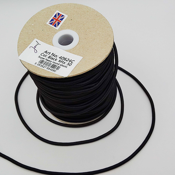 3mm Black Extra Thick Round Elastic.