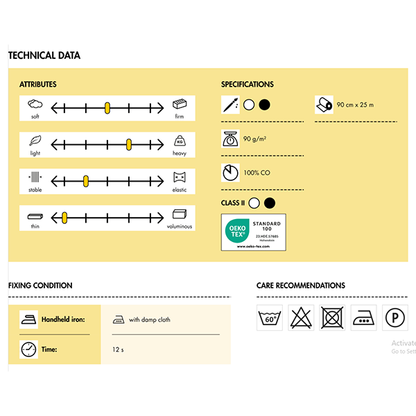 90 grams per metre². Made from 100% cotton. Thin yet heavyweight to provide stability.