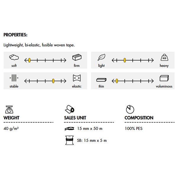 40 grams per metre². Made from 100% PES. Retains perfect shape long term thanks to its two-way stretch. Washable up to 40 degrees.